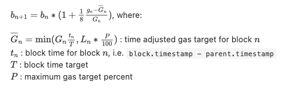 Using the pseudocode language of EIP-1559, the updated base fee calculation becomes: