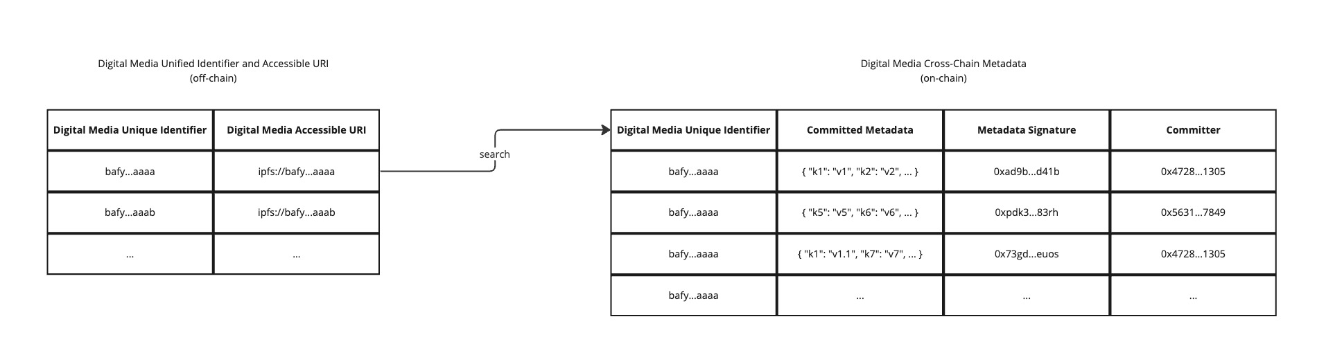 This EIP aims to create an interoperable indexing system to associate all data of the same digital content together (Figure 1). This will make it easier for users to find and trust digital media content, and it will also make it easier for systems to share and exchange information about this digital media content.
